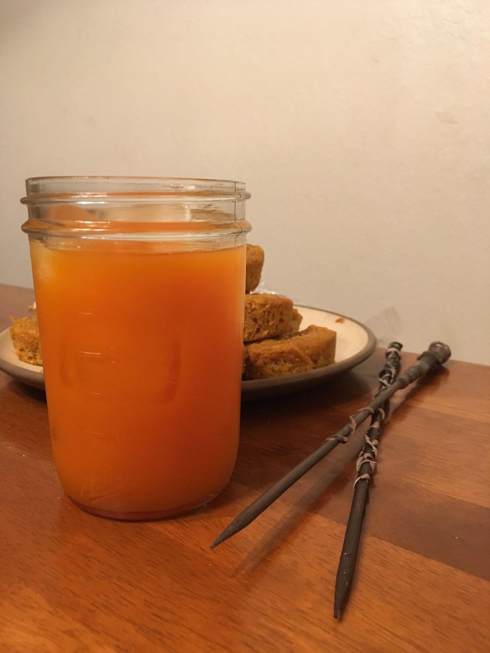 My first project was the wands. There are lots of good tutorials detailing this process out there. Basically, I took large bamboo skewers and used a hot glue gun and paint to recreate Harry and Hermione’s wands. Total cost: less than $15, including a new glue gun because mine disappeared in a move.